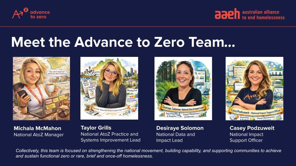 We are able to provide a range of support for your community’s efforts to end homelessness through our National AtoZ Support Team (thanks to the contributions made by AtoZ communities, partners and with the amazing support of the John T Reid Charitable Trusts) -